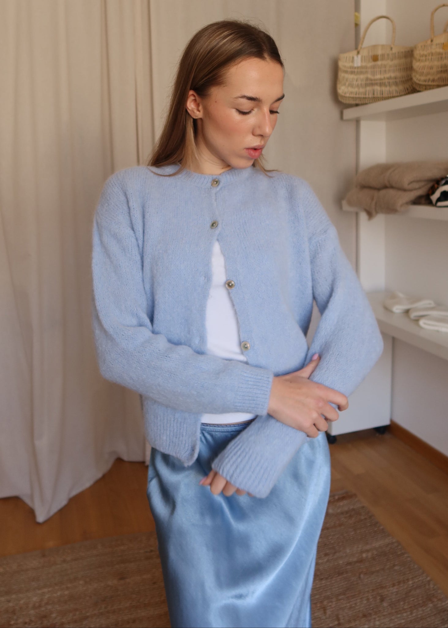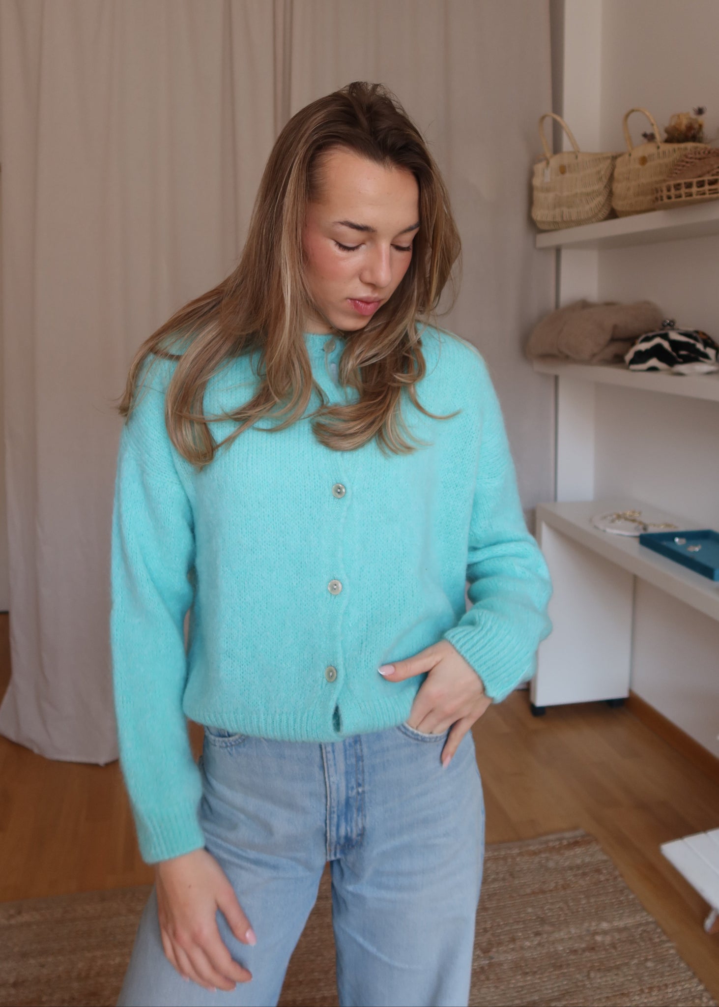 Tento trendy cardigan z alpaky je dokonalým spojením stylu a pohodlí. Vyrobeno ze směsi vlny, polyamidu a elastanu nabízí teplo, jemnost a flexibilitu po celý den.
