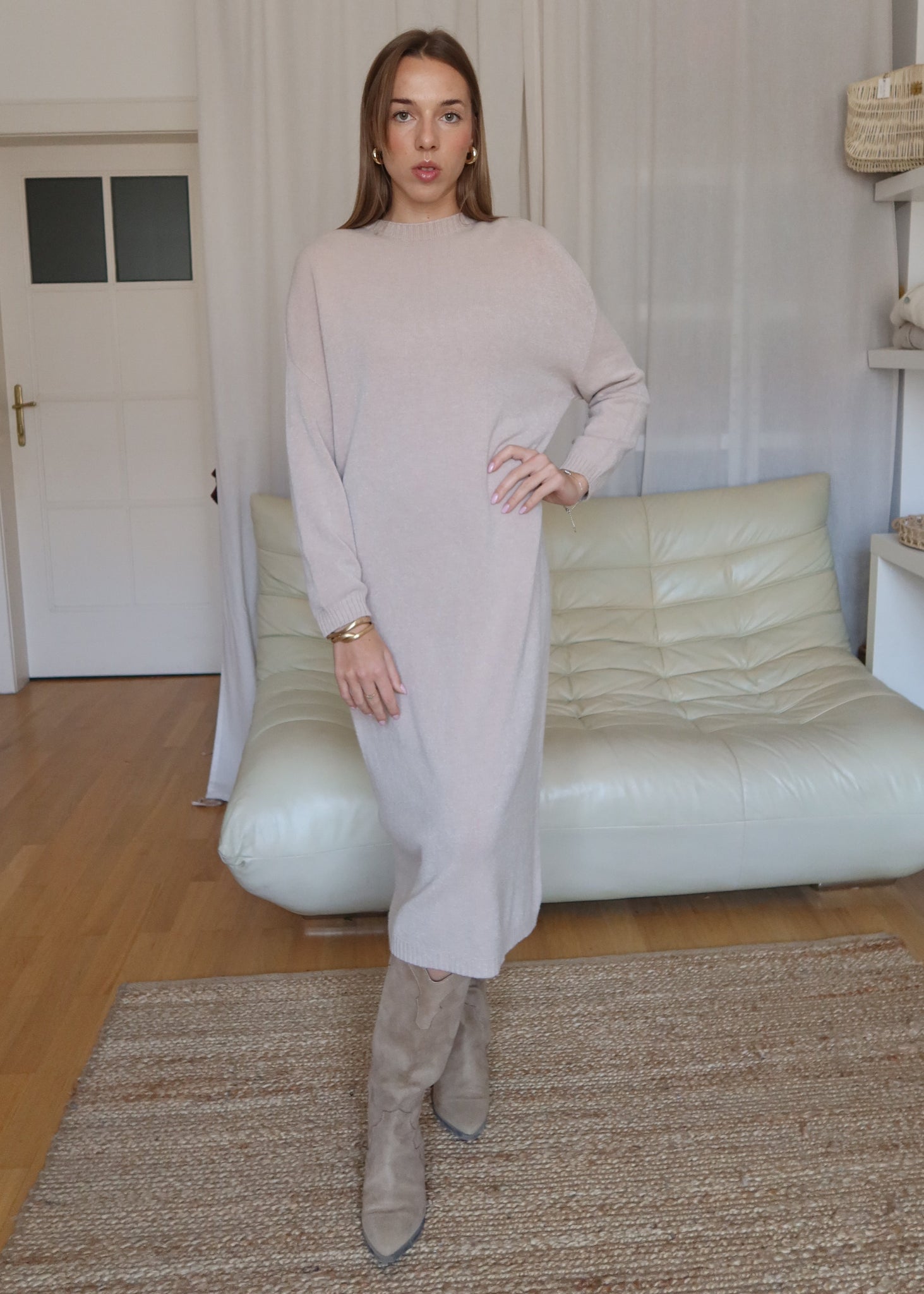 Tyto midi šaty jsou naší volbou pro elegantní outfit, když klesají teploty