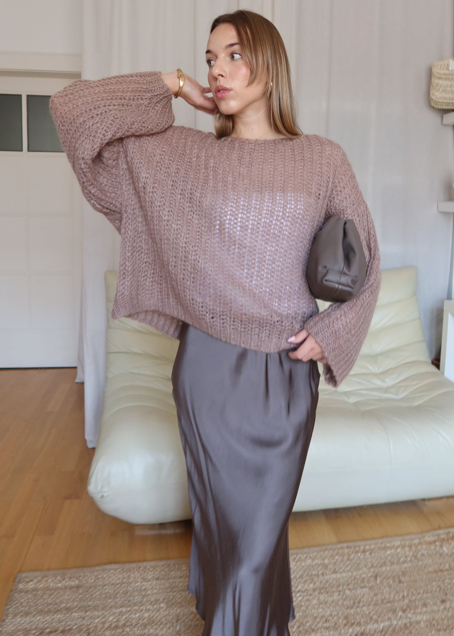 Nadýchaný, volný a neuvěřitelně příjemný na dotek. Tento svetr s podílem 33 % moheru působí doslova jako obláček – hřejivý, ale lehký, elegantní, ale uvolněný.