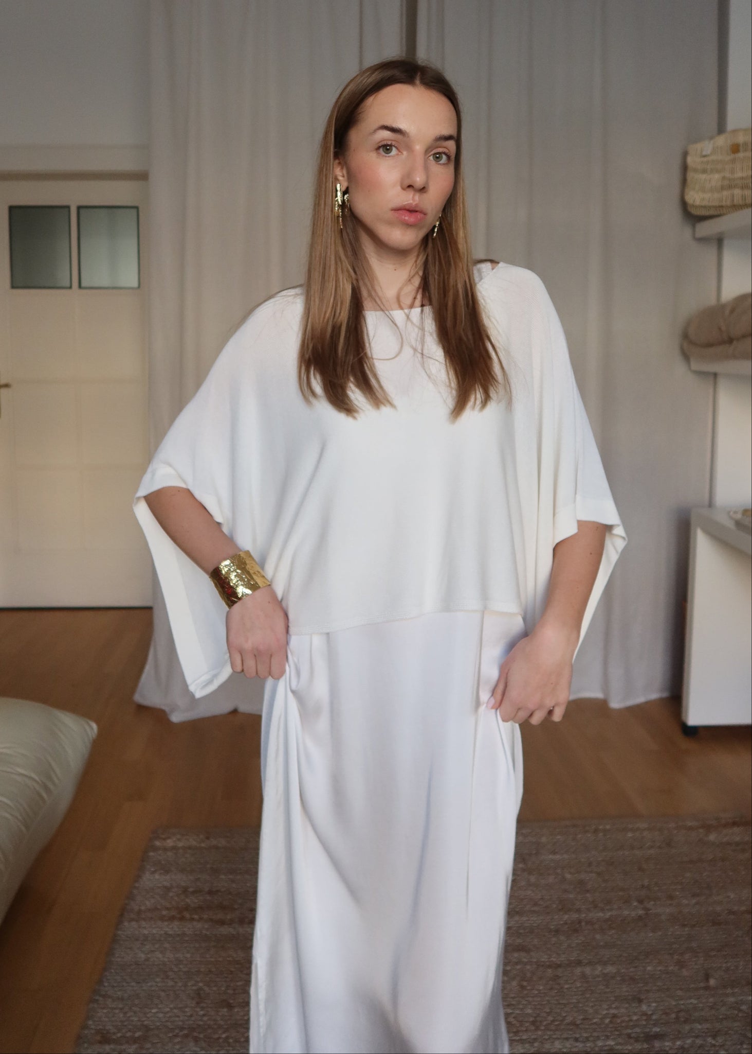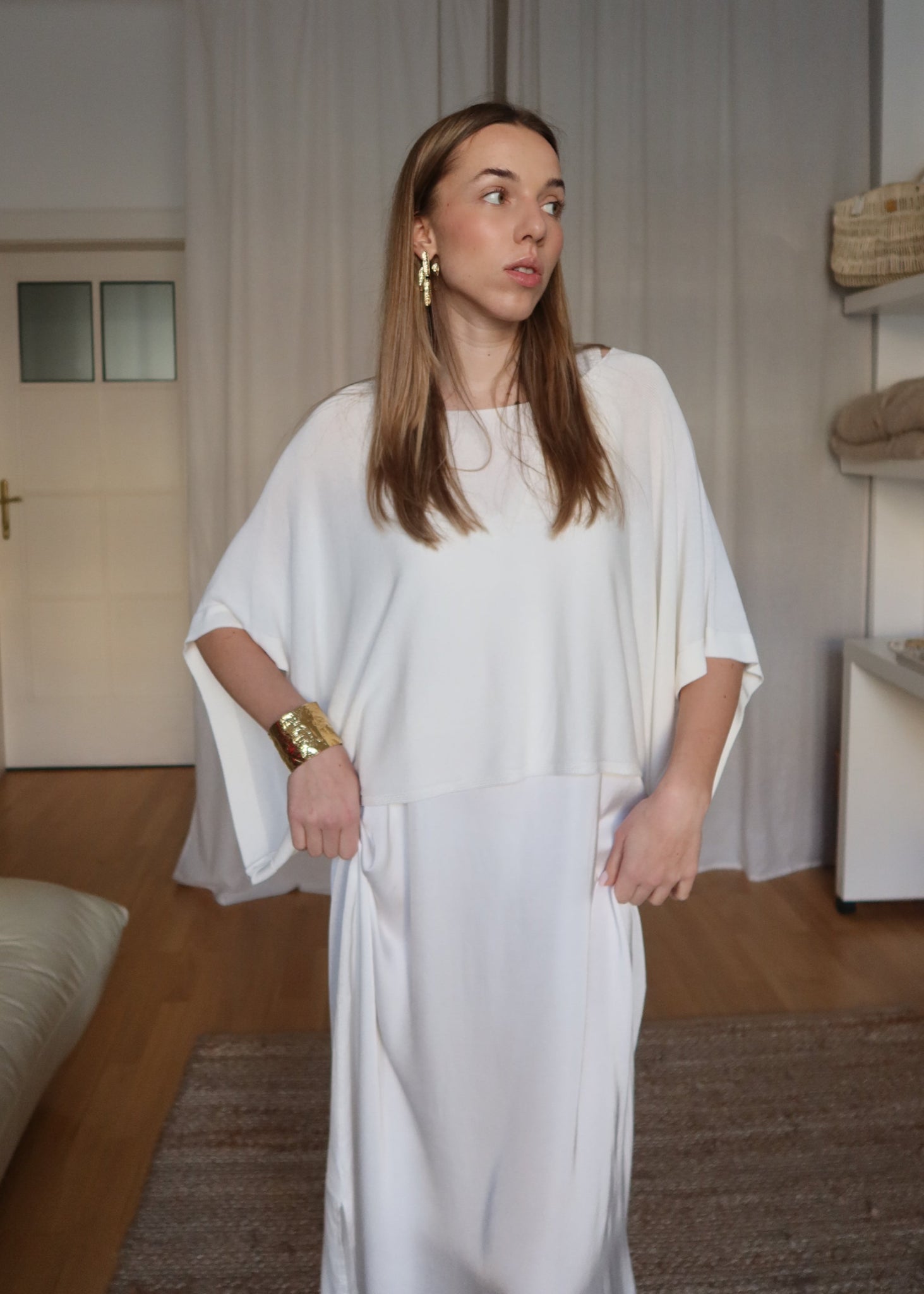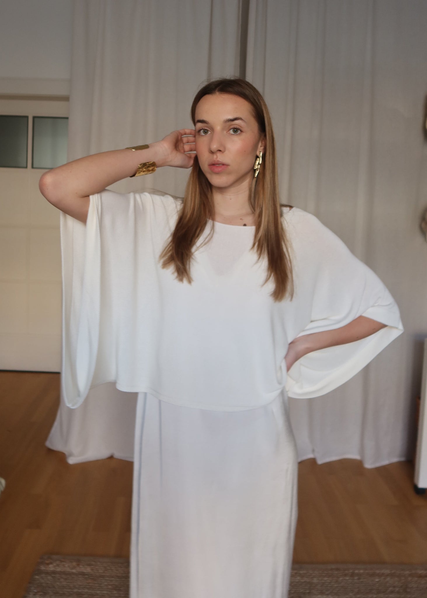 Tento přehoz se vyznačuje elegantním střihem, který doplňuje siluetu šatů a dodává jim sofistikovaný vzhled. Je vhodný pro různé příležitosti – od formálních večeří po běžné každodenní nošení.