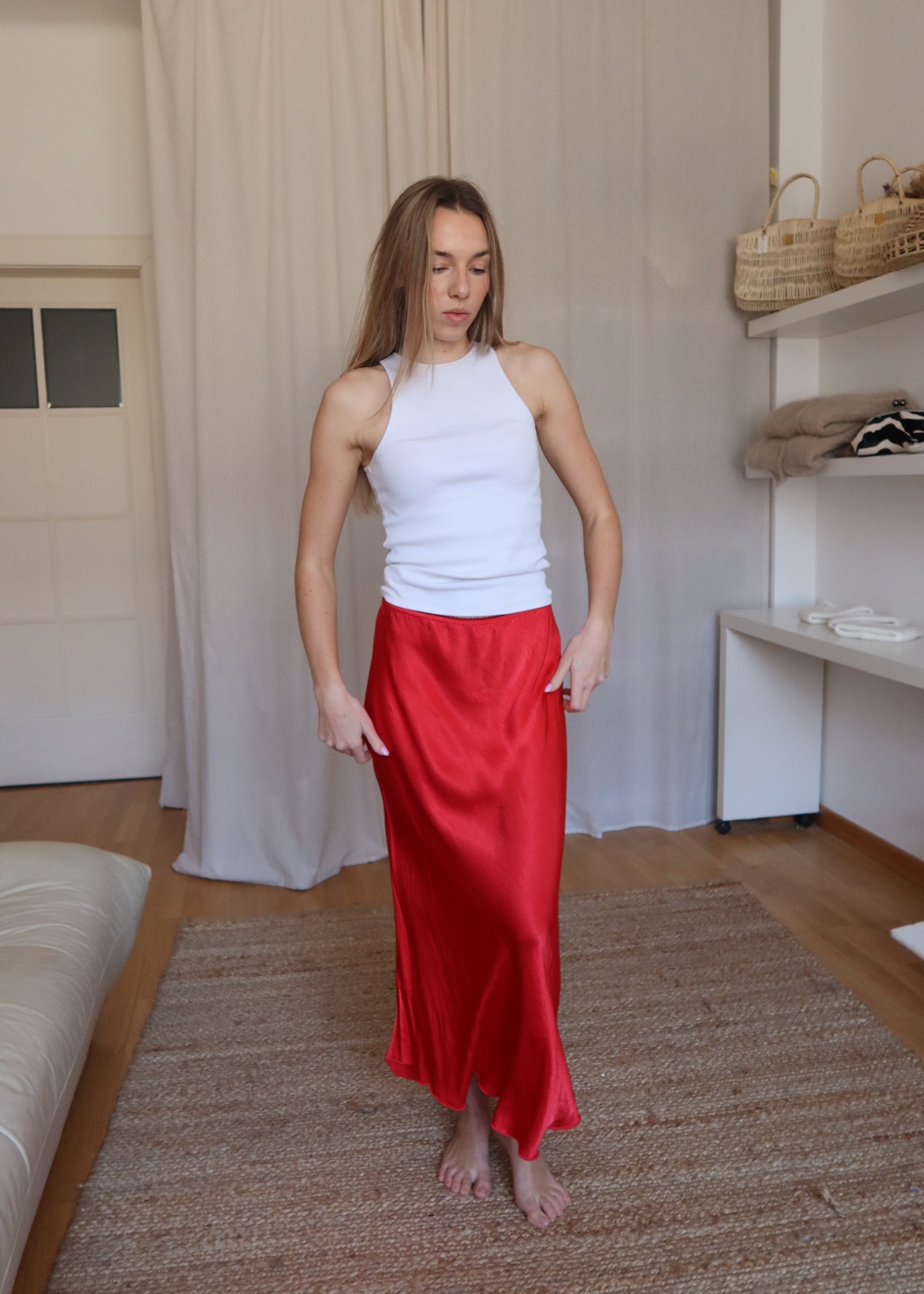 Viskózová sukně / Červená