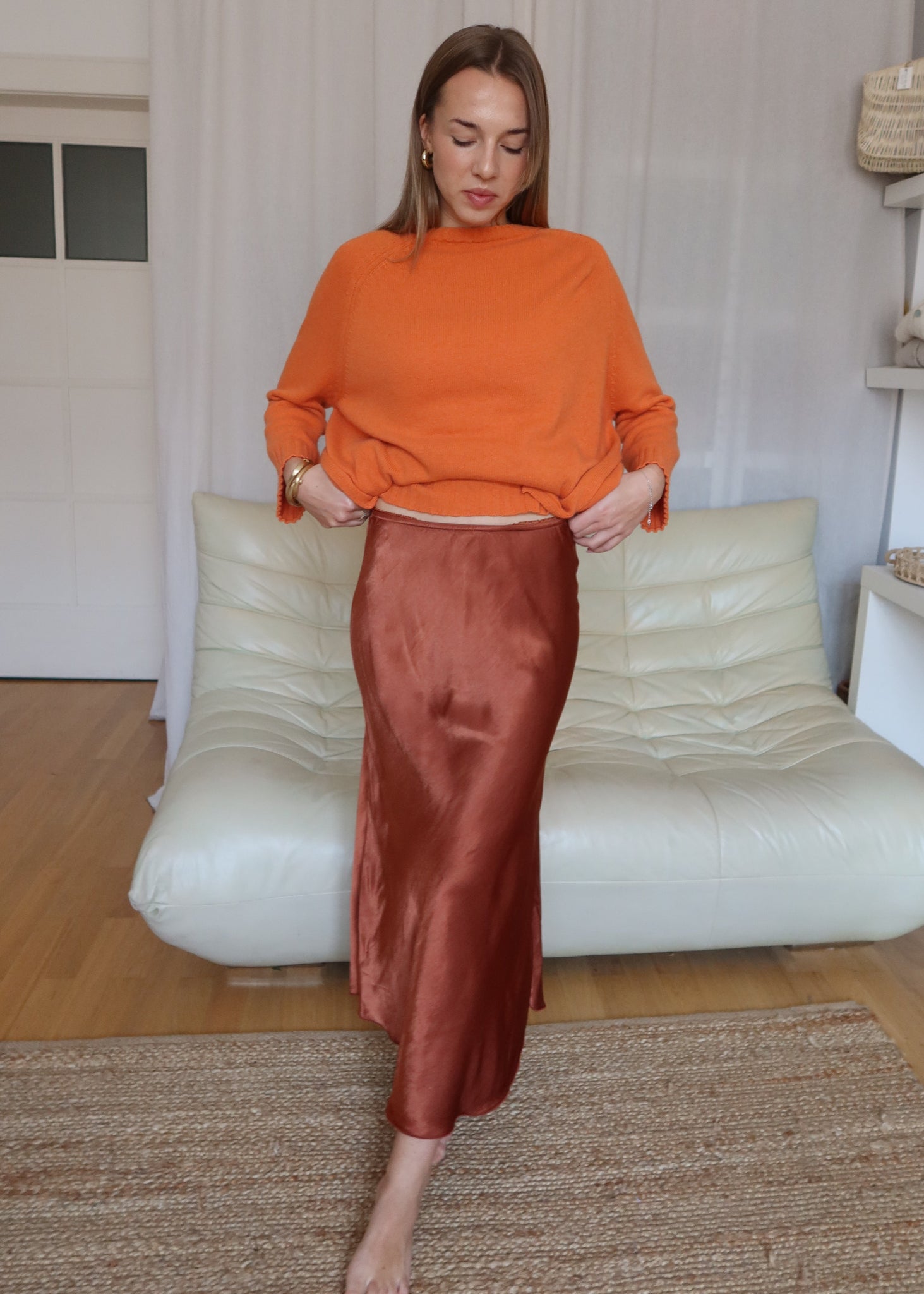 • Load image into Gallery viewer, Viskózová sukně / podzimní dýně